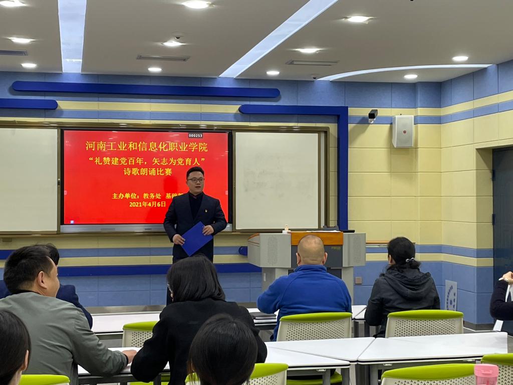 为深入学习贯彻习近平总书记关于教育的重要论述和全国、全省教育大会精神,加强和改进新时代师德师风建设,以高质量的师德建设水平向建党百年献礼,围绕“礼赞建党百年,矢志为党育人”主题,4月6日下午,我院教务处与基础部共同举办了“礼赞建党百年,矢志为党育人”师德师风诗歌朗诵大赛。