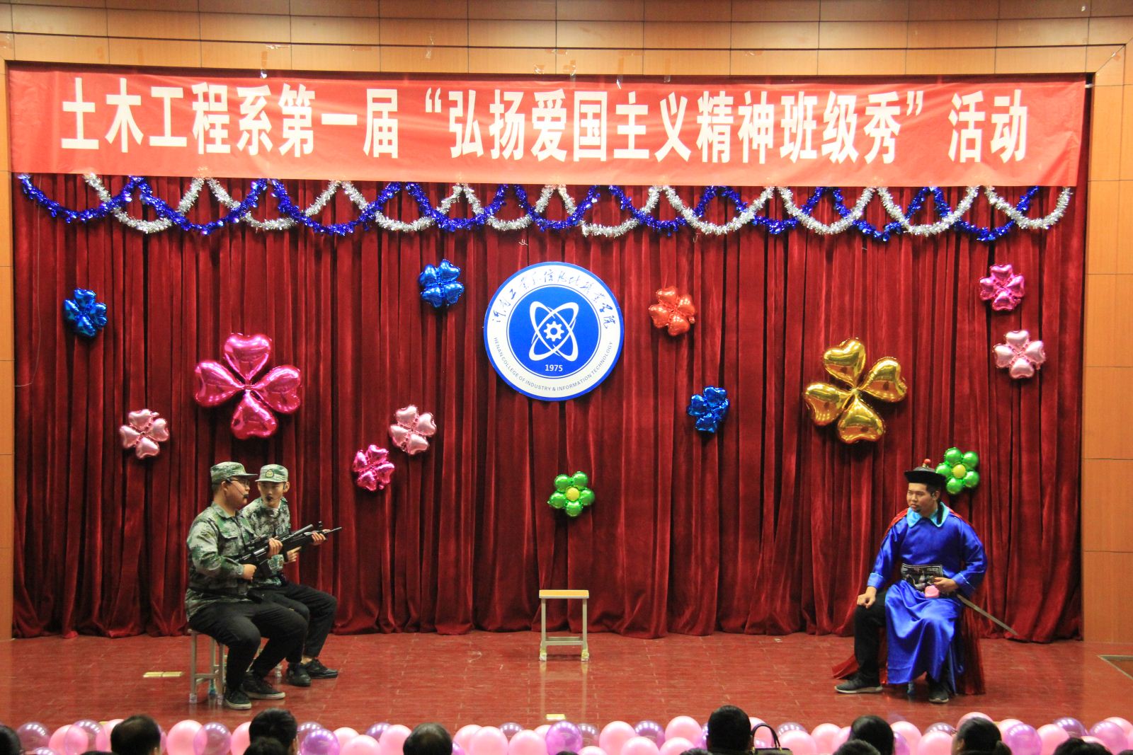 为弘扬爱国主义精神,引导学生建功立业新时代,凝聚班级向心力,营造正面、积极、团结、好学的校园文化氛围,培养学生高尚的道德情操和高雅的审美情趣,12月11日,我院土木工程系在多功能报告厅举办了“弘扬爱国主义精神”班级秀活动。经过前期预赛的选拔,共有7个班级的12支队伍进入了11日下午举行的决赛。