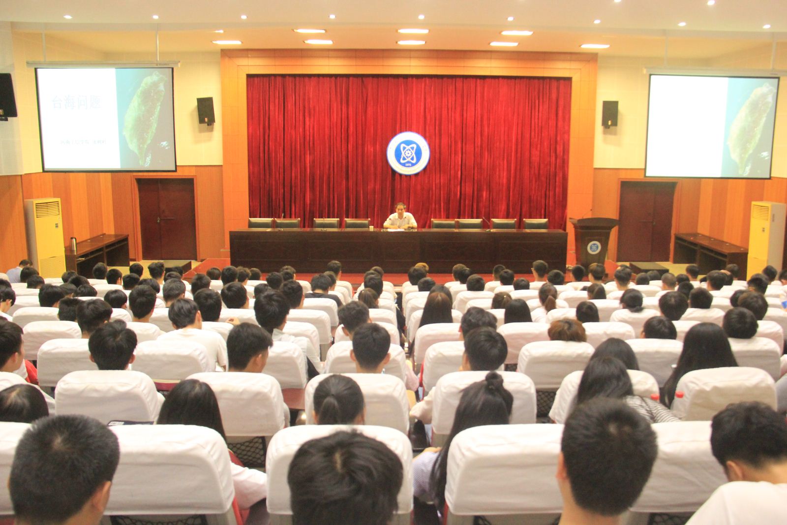 讲座中, 张树岭从台海问题的由来、影响台海问题的因素、台海问题的前景展望、解决台海问题的重要意义等四个维度为师生们深入分析了新形势下台海问题的发展趋势,同时系统讲述了习近平总书记关于推动两岸关系和平发展、推进祖国和平统一的新理念新主张新要求,强调了和平发展是实现祖国和平统一的必由之路,是解决台海问题的最佳途径。他号召全院大学生应用历史的眼光、辨证的方法、发展的思维、务实的态度,认清形势,化满腔的爱国情、报国志为强大的学习动力,从身边小事做起,从细节抓起,勤奋学习、热爱生活,通过社会实践、志愿服务等具体形式,做到知行合一、求真务实、脚踏实地,努力提高报效国家的本领,以实际行动维护祖国统一和平发展,推进民族统一伟大进程。