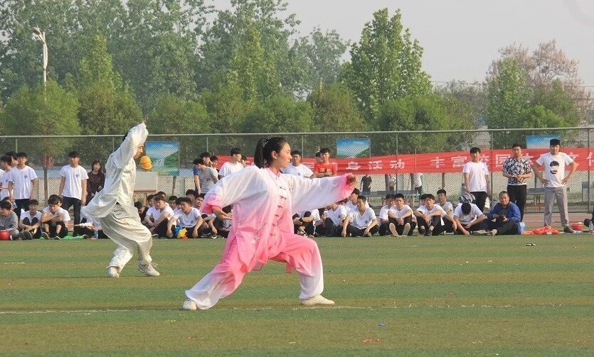 伴随着铿锵有力的运动员进行曲,英姿飒爽的仪仗队、意气风发的裁判员方队和朝气蓬勃的6支系部代表队,迈着整齐的步伐,喊着嘹亮的口号依次通过主席台。随后,开幕式文体节目火爆上演。少林功夫、跆拳道、舞蹈、太极拳、啦啦操等各种精彩绝伦的表演,迅速将现场氛围推向高潮。