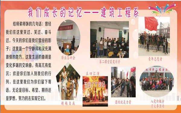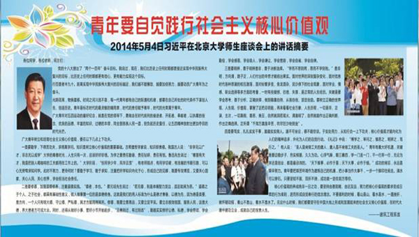 新学年,新气象,在庆祝伟大的祖国成立65周年华诞之际,全院师生坚定信念,牢记使命,深入践行社会主义核心价值观,围绕学院中心工作,继续发扬“特别能吃苦、特别能战斗、特别能奉献、特别能担当”的学院精神,改革创新,开拓进取,努力推动学院各项工作取得新突破,迈向新水平。各处室、各党支部按照要求,在宣传形式和内容上不断创新,展现了全院师生员工昂扬向上的精神风貌。