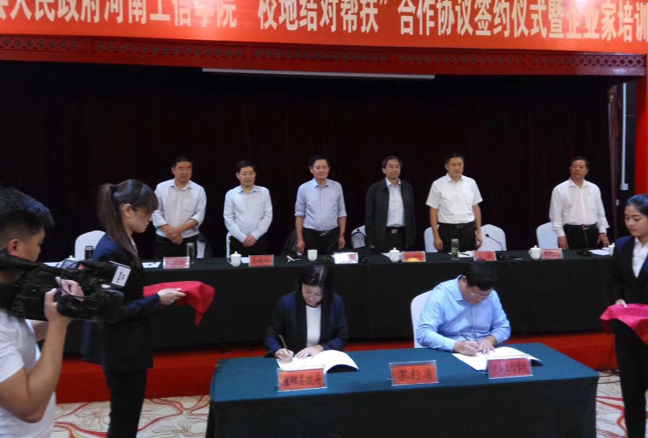 培训开始前,我院与淮阳县人民政府签订了“校地结对帮扶”合作协议,为进一步开展校、政、企深入合作,促进教育链、人才链与产业链的有机衔接,把精准扶贫落到实处奠定了良好的基础。