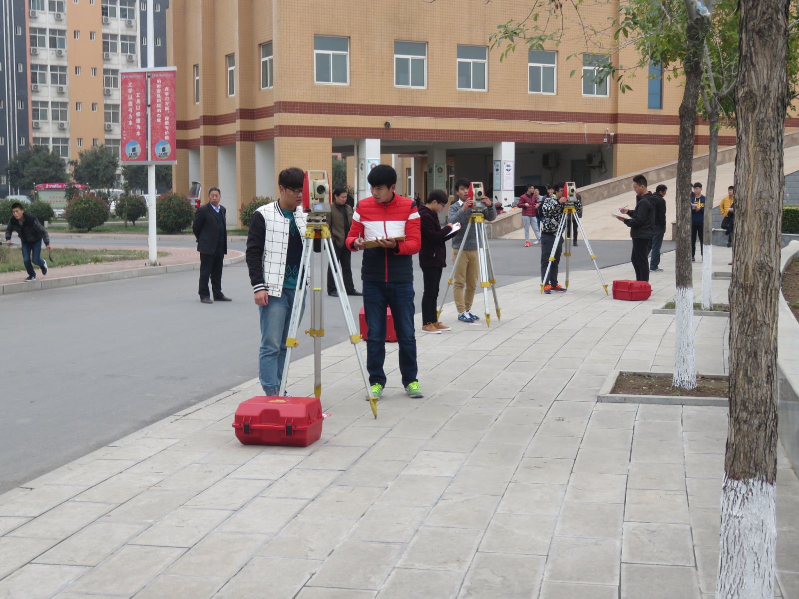 郭大州致开幕词,他首先代表竞赛组委会对参赛师生以及协办方的大力支持表示感谢。他说,本次测量技能竞赛为学生提供了一个难得的自我展示和自我挑战平台,希望参赛选手以此次竞赛为契机,巩固理论知识,提高实践技能,熟练掌握各类测量仪器的应用,秉承“重在参与、重在学习、重在提高”的原则,赛出风格,赛出成绩。下午14时整,在李华奇主任的一声号令下,比赛正式开始。6个参赛小组选手各施其能,在“一级导线测量”和“四等水准测量”两个竞赛项目上展开了激烈角逐。