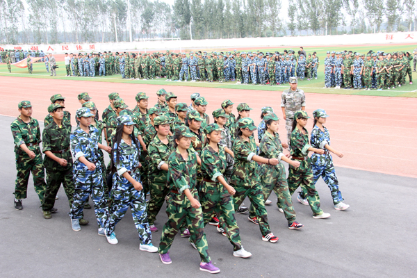 全体2014级学生组成了12个受阅方阵,以严整的军容军姿依次通过主席台,展示半个月来的军训成果。立正、稍息、敬礼……在军训方阵表演中,同学们动作整齐、口号嘹亮、步伐稳健、英姿飒爽,充分展现了我院学生积极进取、昂扬向上、敢于拼搏、永往直前的精神风貌和豪情壮志。