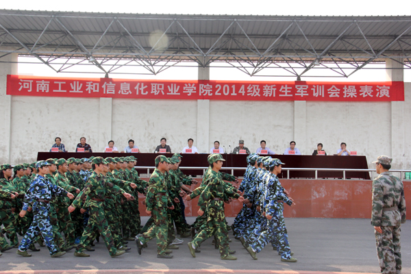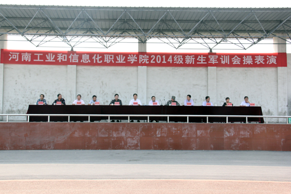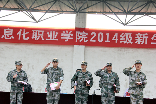 伴随着汗水、泪水、快乐与友谊,经过半个月的刻苦训练,我院2014级新生圆满完成了军训任务。9月22日下午,新生军训会操表演在学院体育场隆重举行。中国人民解放军预备役部队409团政治部主任罗先德中校、学院领导王海长、陈荣邦、席振修、邱雨生、学院相关处室和各系负责人观看了会操表演并为受表彰的军训优秀教官和先进个人颁奖。会操表演由学生处处长刘士合主持。