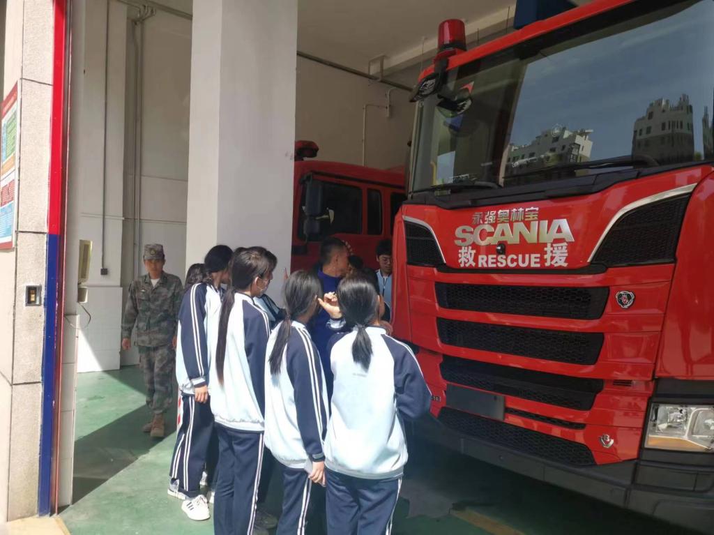 师生近距离参观消防车和随车器材装备,探秘消防车里的“神奇兵器”