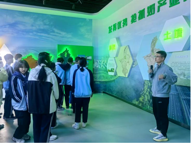 11月12日,畜牧专业组织学生赴吴忠市利通区科技展览馆与宁夏塞上牧源牧业有限公司开展沉浸式研学。在科技展览馆,学生沿奶牛产业发展脉络,借实物陈列、全息投影、互动体验等形式,系统学习奶牛培育、养殖技术、乳制品加工等全产业链知识;在宁夏塞上牧源牧业有限公司,学生实地观摩数字化智慧牧场体系,见证牛舍环境自动控制、精准饲喂等先进技术,还在挤奶车间了解挤奶前消毒、奶质检测等标准化流程,直观感受数字化对奶业高质量发展的作用。此次研学以“讲解—实践—答疑”闭环模式提升学生实操能力,搭建校企沟通桥梁,实现理论与实践深度融合。