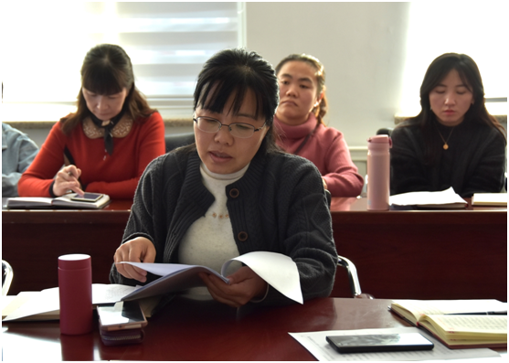 党总支副书记、副校长莱惠玲同志传达《中共宁夏回族自治区委员会十ニ届十四次全会公报》;