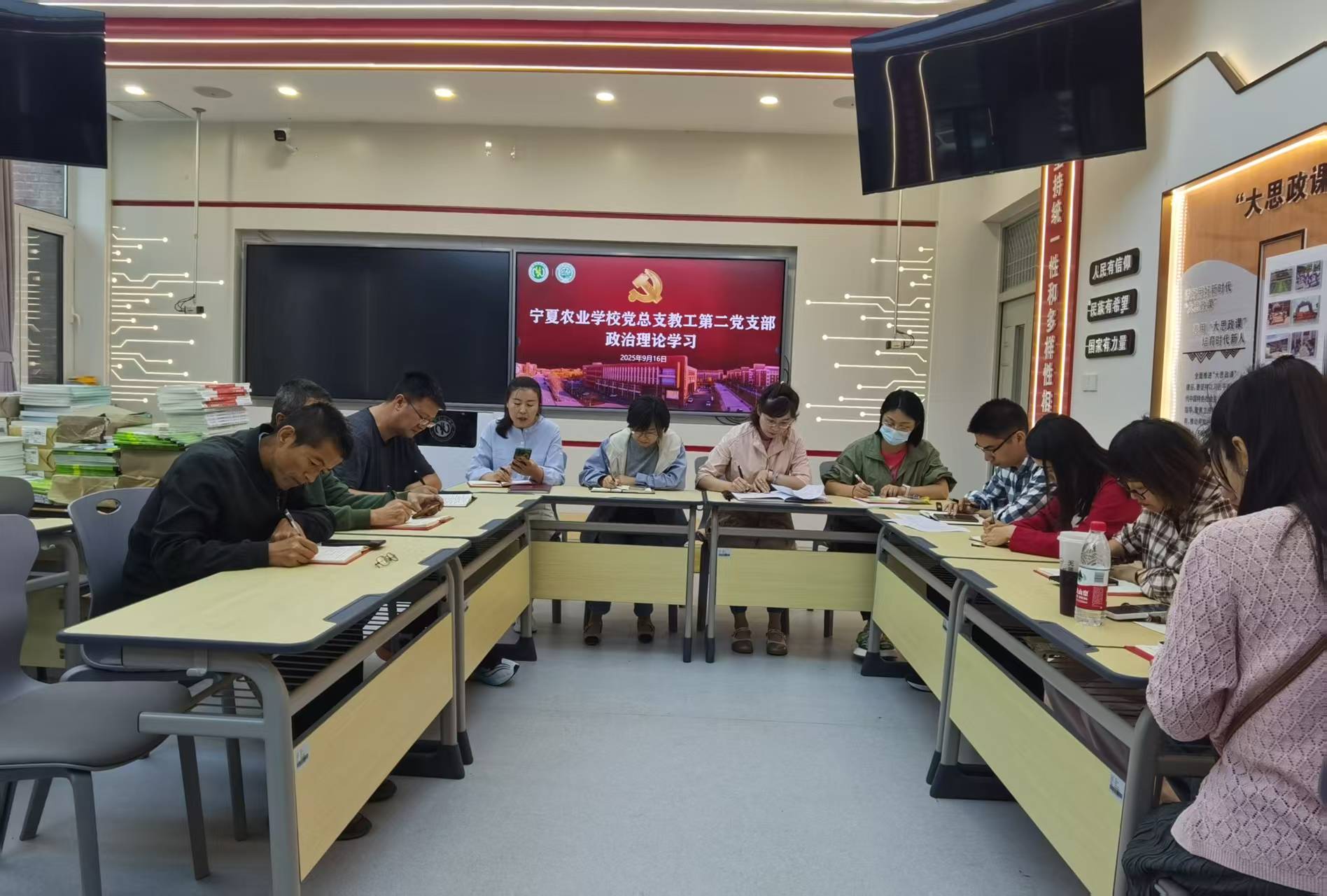 9月16日,学校党总支组织第一、第二、第三教工党支部分别召开专题学习会,认真学习了习近平总书记近期重要讲话和重要理论文章、自治区党的建设领导小组(扩大)会议精神、宁夏职业技术大学党的建设工作领导小组会暨深入贯彻中央八项规定精神学习教育总结会会议精神。