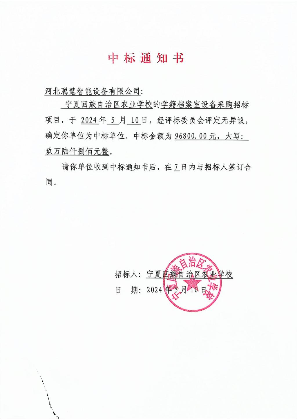 上一篇:宁夏回族自治区农业学校园林规划设计实训室升级改造招标项目中标通知书