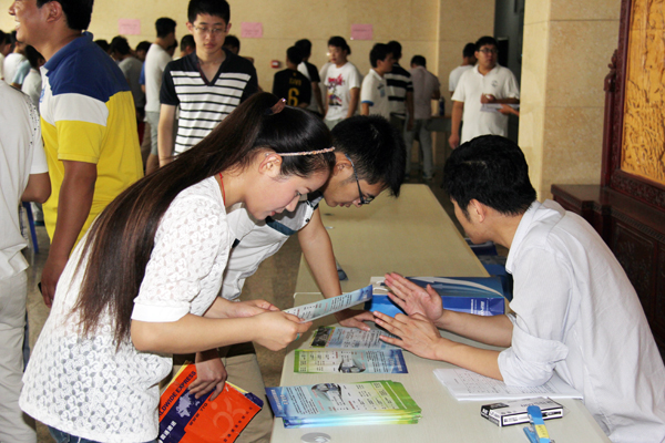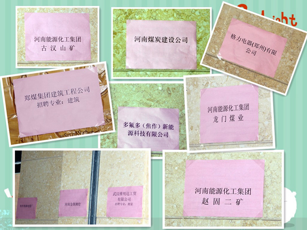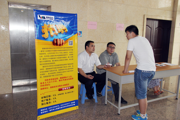 6月18日上午,我院2014届毕业生校园招聘会在图书信息中心大楼二楼大厅成功举办。本次招聘会共吸引了包括河南煤炭建设集团、河南煤化集团、焦作市铁路电缆厂、多氟多焦作新能源科技有限公司、河南金图测绘技术有限公司、360搜索营销服务公司、银联商务有限公司等近20家知名企事业单位、上市公司前来参会,招聘会的举办为广大2014届毕业生搭建了有效的择业平台。据统计,招聘会共提供岗位100多个,需求人数近2000人,需求范围涵盖了我院的大部分专业。