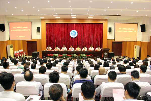 又是一季金秋艳阳,又是一季丹桂飘香。在全国第30个教师节来临之际,9月9日下午,我院在多功能报告厅召开2014年教师节表彰暨全体教职工大会,热烈庆祝第30个教师节的到来。河南省工业和信息化厅副厅长陈党义、人事教育处处长程燕燕、学院领导翟贵平、王海长、毋虎城、陈荣邦、席振修、邱雨生出席会议,会议由党委书记王海长主持。