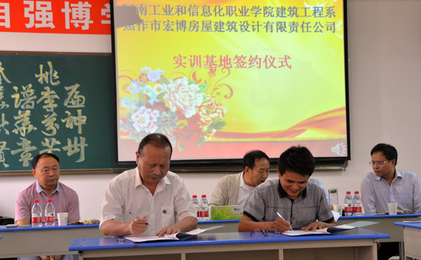 吕况代表学院与焦作市宏博建筑设计有限责任公司签署实训基地合作协议