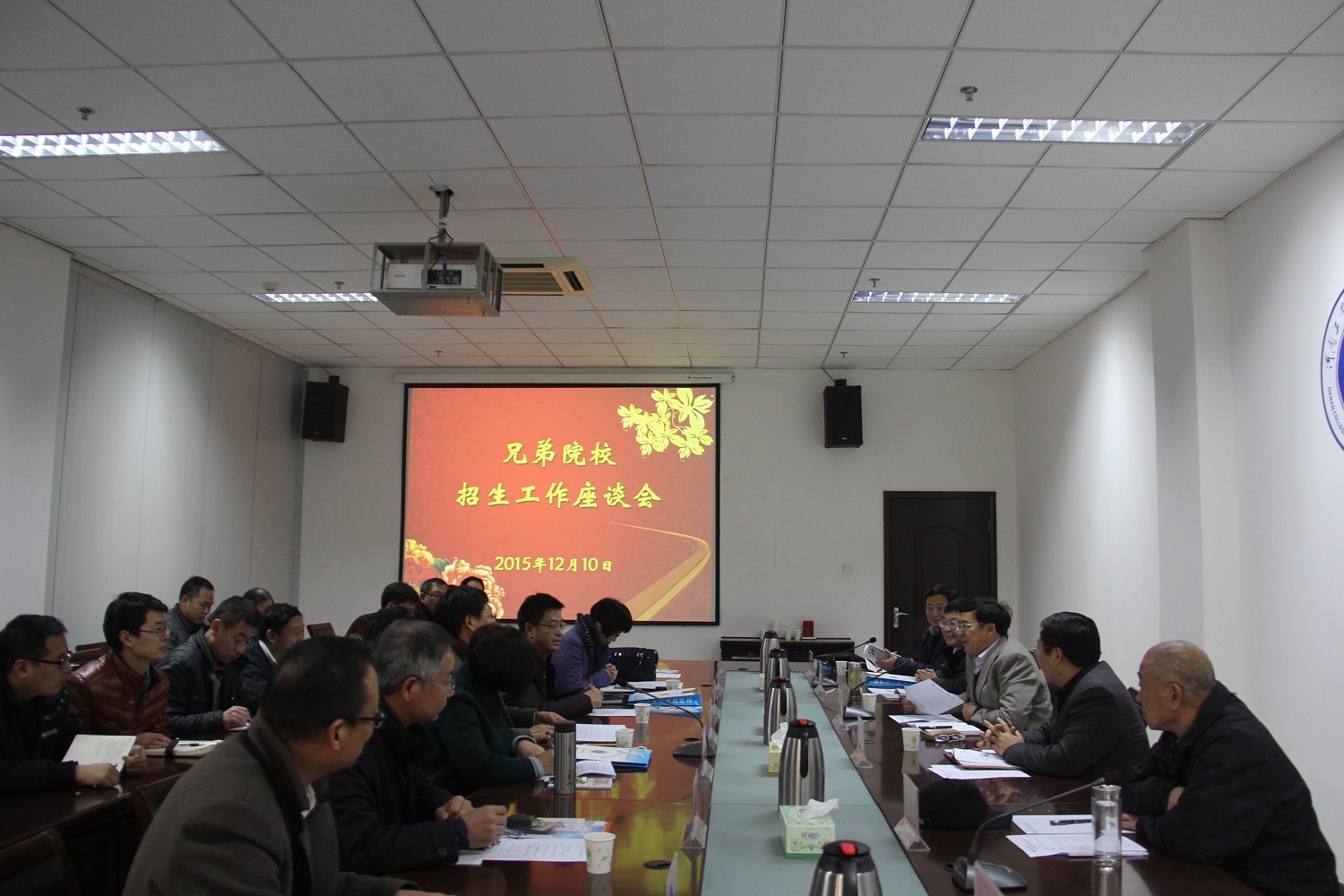 12月10日上午,我院在第二会议室举办兄弟院校招生就业工作座谈会。河南工业职业技术学院副院长王仁伟、河南信息统计职业学院副书记钟开文、河南水利与环境职业学院副院长蒋彦成、郑州财税金融职业学院副院长施长春以及各兄弟院校招生就业部门负责人,学院领导翟贵平、王海长、陈荣邦等出席座谈会。与会各方分别就招生就业、教育教学改革等工作进行了深入交流与探讨。