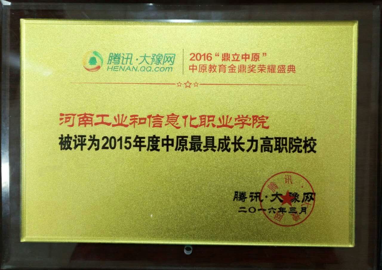 3月12日下午,腾讯·大豫网在郑州召开2016“鼎立中原”中原教育金鼎奖荣耀盛典。我院被评为“2015年度中原最具成长力高职院校”。