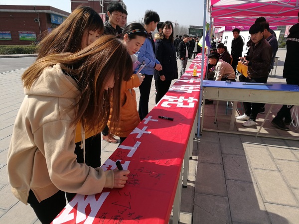 本次活动由土木工程系主办。活动通过现场签名、图文展示校园非法网贷危害案例、制作形象生动和饱含深意的立体警示模板及平面展板等形式,全方位揭露了非法校园网贷对在校生的毒害,同时提醒广大学子要强化自我保护意识,理性消费,远离网贷陷阱,做有责任和担当的大学生。现场围观师生积极响应,纷纷在条幅上签下自己名字对活动表示支持。同学们表示,要认真学习相关知识,提高自我辨识能力,尤其对涉及金钱和隐私的各种校园推销保持十二分警惕,谨防上当受骗。