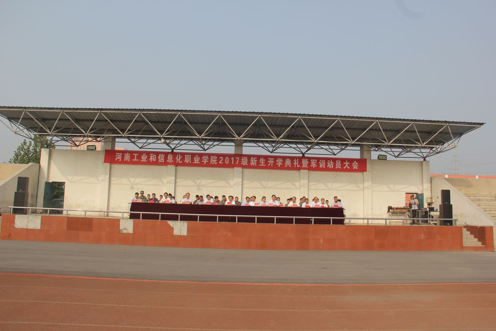 9月11日上午,我院2017级新生开学典礼暨军训动员大会在运动场隆重举行。院领导王海长、张树岭、毋虎城、陈荣邦、张庆伟、吕况、魏道清、张红兵,学院各系部、相关处室负责人、全体军训教官出席大会。大会由学生处处长丁军猛主持。
