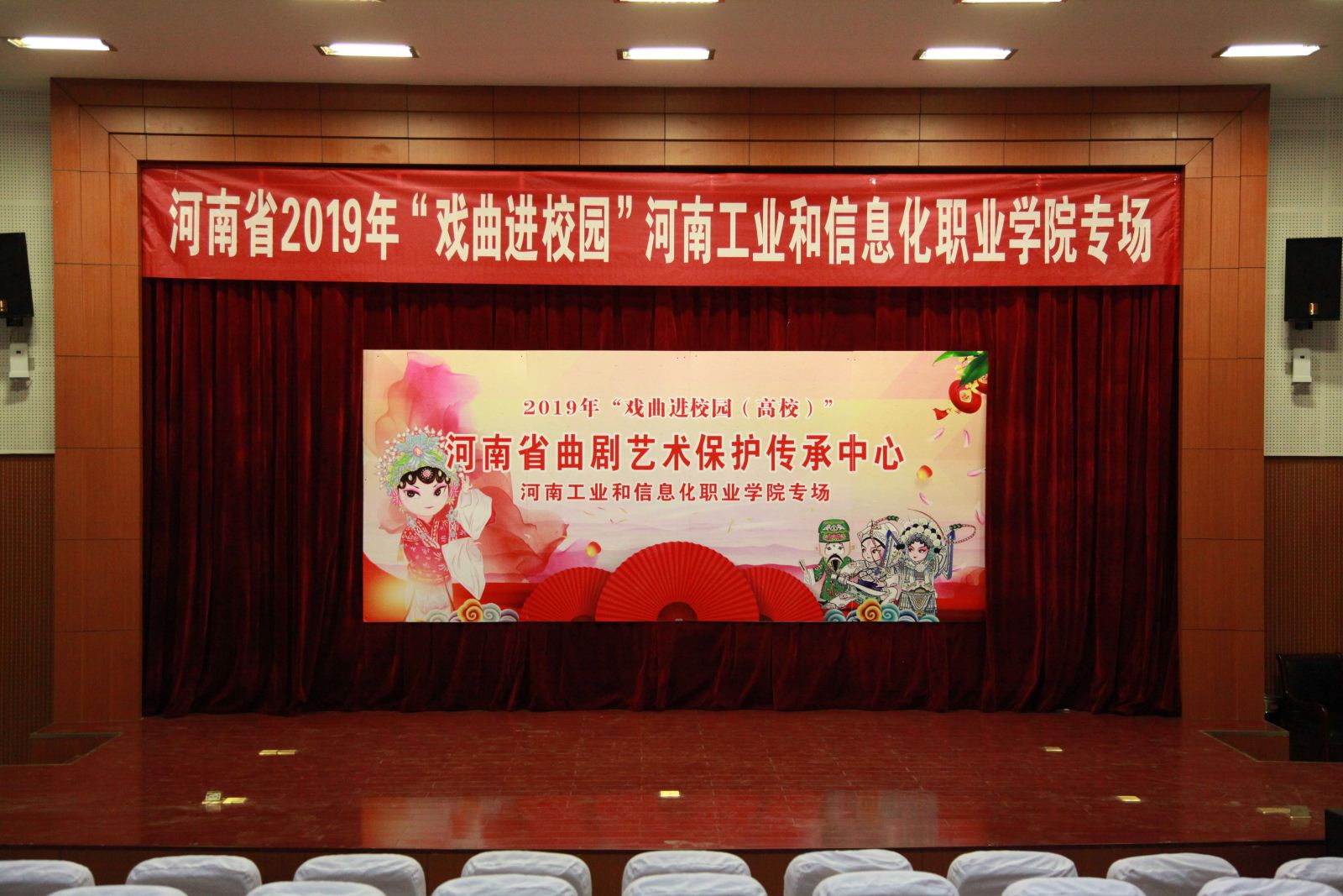 为大力弘扬中华优秀戏曲文化,提升广大师生的传统文化素养,6月6日,由中共河南省委宣传部、河南省教育厅、文化和旅游厅、财政厅联合主办的2019年“戏曲进校园”活动走进我院。来自河南省曲剧艺术保护传承中心的艺术家们为师生们奉献了一场精彩纷呈的戏曲盛宴。副院长毋虎城、院长助理吕况以及300余名师生现场观看了演出。