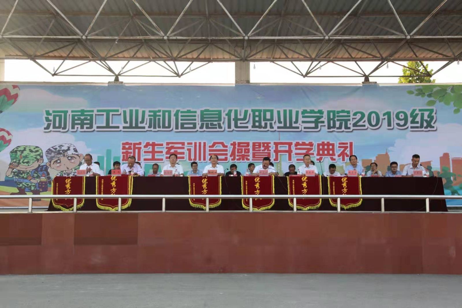 9月27日下午,我院2019级新生军训会操暨开学典礼在田径场隆重举行。院领导张树岭、毋虎城、陈荣邦、张庆伟、吕况、魏道清、张红兵以及各系部负责人、各党总支、党支部书记出席典礼。大会由学生处处长丁军猛主持。各系部新生辅导员、班主任及2019级全体新生参加了会议。