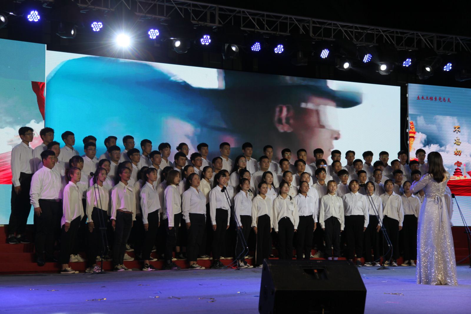 晚会在冷焰火表演《神秘者》和舞蹈《燃爆青春》营造的热烈氛围中拉开序幕。接下来,由院社团联合会、院学生会同学倾情表演的话剧《丰碑》,通过展现红军长征途中一段感人的故事,赞扬了红军战士的艰苦奋斗,舍己为人,永不屈服的伟大精神;小品《超级骗骗骗》中,几名同学通过惟妙惟肖的表演和极具真实性的场景,揭露了骗子们的常用伎俩,为同学们敲响了防诈骗的警钟;歌曲串烧和舞蹈《芳华》为我们展现了不同时代的青年为了自己的理想信念艰苦奋斗、展翅高飞;财经商贸系带来的歌伴舞《我们都是追梦人》挥洒青春的汗水、敲响青春的乐章。整场晚会气氛在现场2000余名师生合唱《我和我的祖国》时推向高潮,师生们饱含热情、激情昂扬,在激昂和感动中分享着对革命先驱的崇高敬意和对祖国母亲的深深眷恋。在接下来的第二篇章中,学院各系依次派出最强阵容登台演献唱。《祖国不会忘记》《当那一天真的来临》《团结就是力量》《不忘初心》《歌唱祖国》《共筑中国梦》等一首首主旋律合唱歌曲,从师生们的心底飞出,大家用最熟悉的旋律表达着对伟大的中国共产党和祖国母亲的真挚情感和无比热爱,用飞扬的歌声表达着对建功新时代的向往。