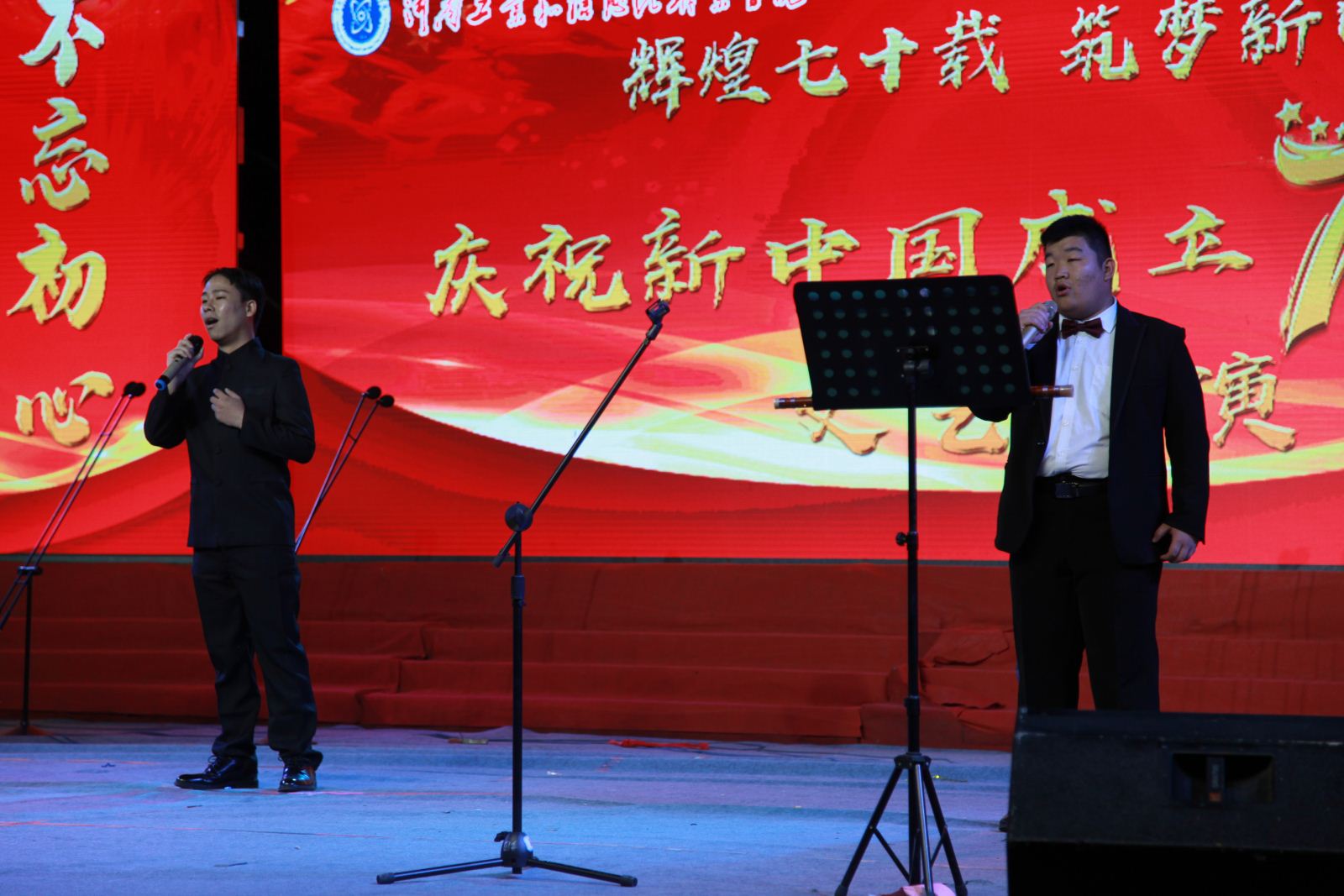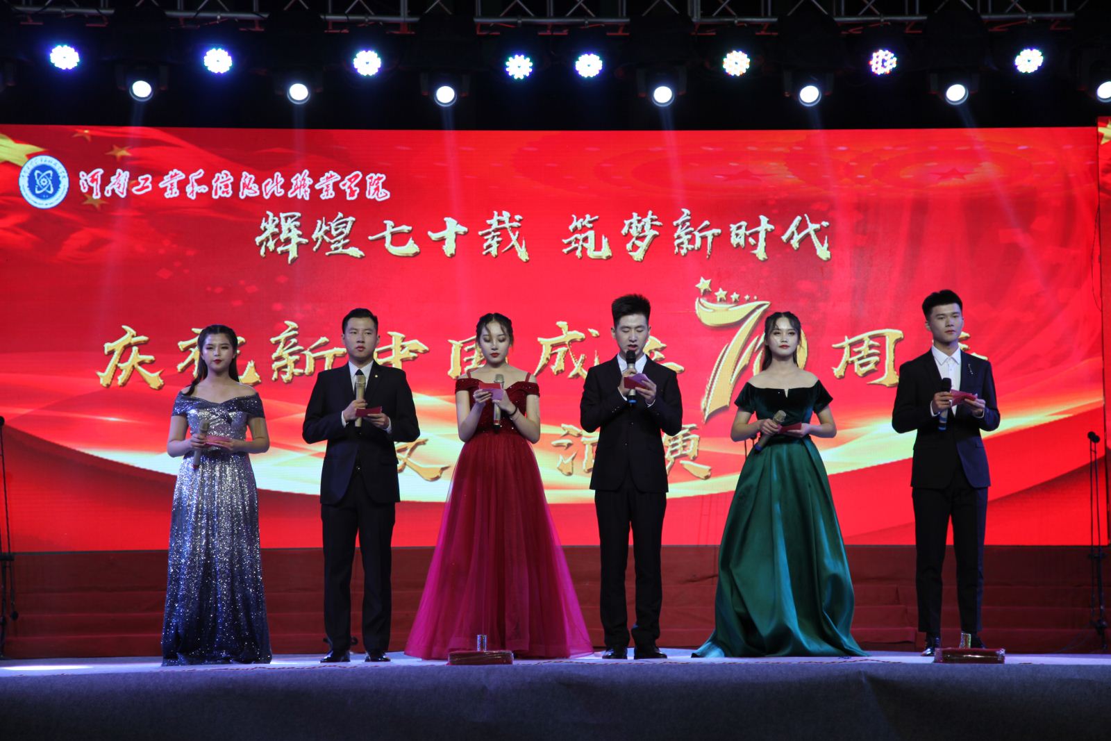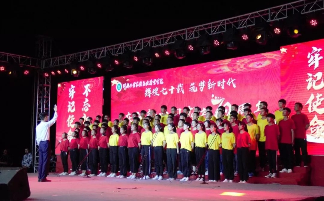 辉煌七十载,筑梦新时代。在新中国成立70周年来临之际,9月26日晚,我院在图书信息楼广场成功举办庆祝新中国成立70周年文艺汇演。院领导张树岭、毋虎城、陈荣邦、张庆伟、吕况、魏道清、张红兵出席活动并和现场师生齐声高唱《我和我的祖国》,用深情的歌声向祖国告白,共同庆祝新中国70周年华诞。学院相关职能部门及各系部负责人、新生班主任、辅导员和2019级全体新生共同观看了演出。