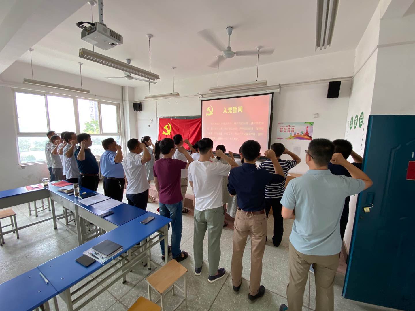 课前,毋院长同机械工程系全体党员一起重温入党誓词,向党的99岁生日献礼