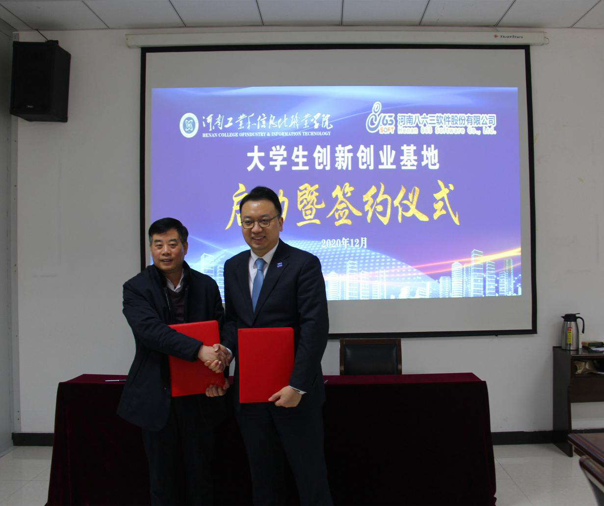 12月9日,我院举行了大学生创新创业基地启动暨签约仪式。院长焦洪涛,党委副书记陈荣邦,党委委员、组织人事部部长刘士合,以及八六三软件公司副总杨亮等参加了仪式。仪式由刘士合主持。