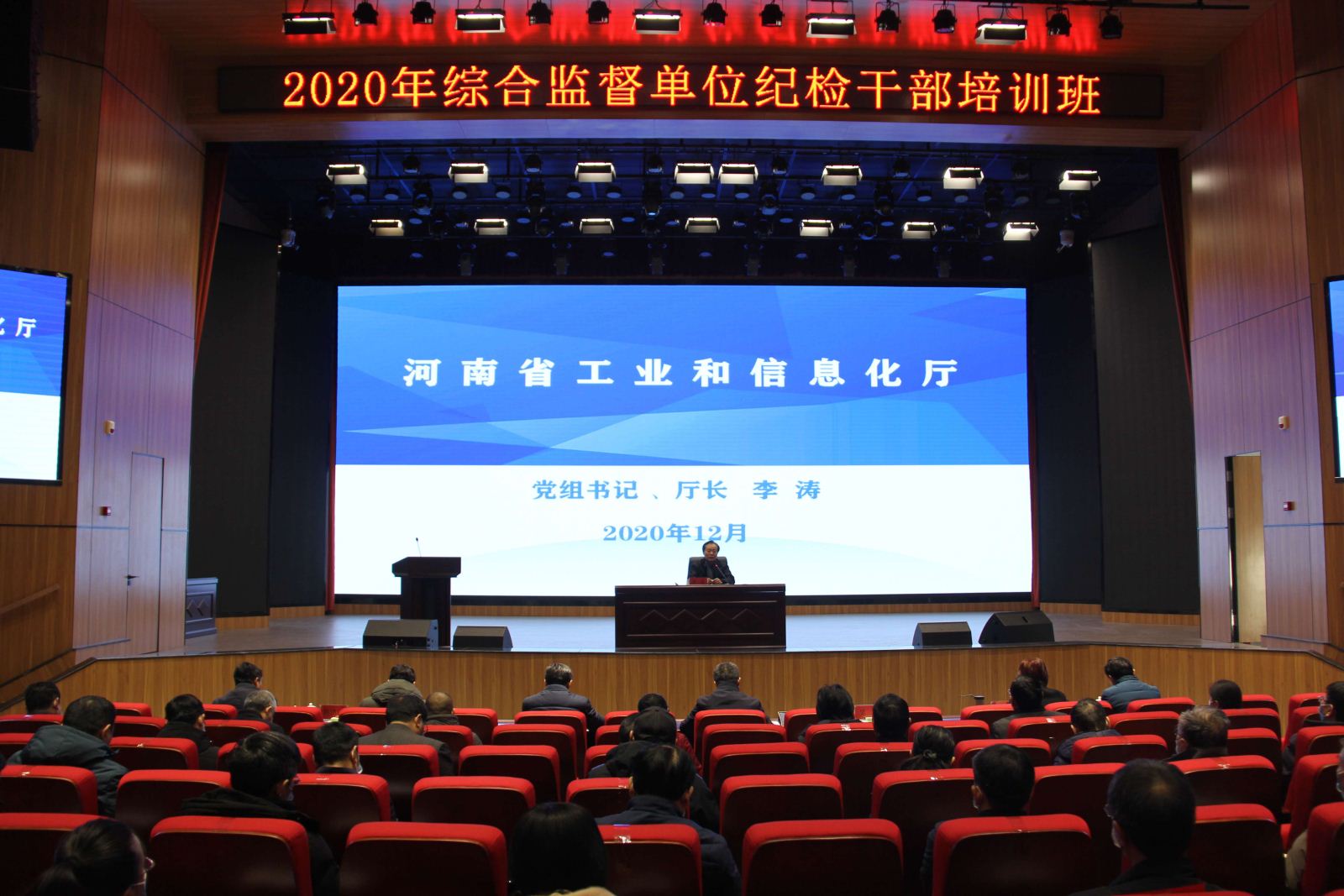 12月16日上午,河南省工业和信息化厅党组书记、厅长李涛莅临我院为省工信厅2020年综合监督单位专兼纪检干部培训班授课。院领导张树岭、焦洪涛、毋虎城、陈荣邦、盛兴文和部分师生参加了学习。