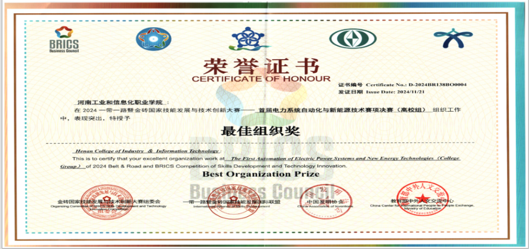 近日,2024一带一路暨金砖国家技能发展与技术创新大赛——首届电力系统自动化与新能源技术赛项决赛圆满落幕,我校获得多项荣誉,学校国家级竞赛类又添新奖牌。