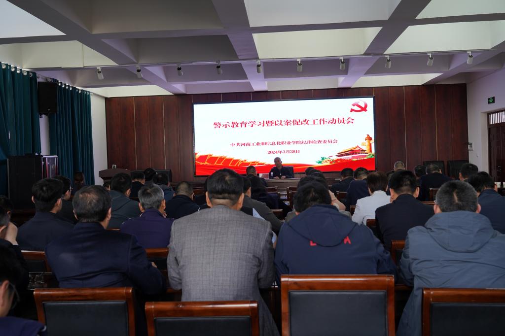 为深入贯彻落实全面从严治党要求,认真落实省纪委监委驻省教育厅纪检监察组的纪检监察建议,推动党员干部不断增强廉洁自律意识,筑牢拒腐防变思想防线,不断深化以案促改、以案促治,3月28日下午,学校在行政楼401会议室开展警示教育学习暨以案促改工作动员会。校纪委书记盛兴文讲话,校领导及中层干部参加。