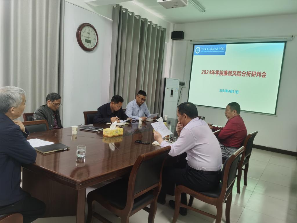 为指导推动校属各部门精准排查廉政风险点,细化风险防控措施,有效防范化解廉政风险,4月11日上午,校纪委以后勤处为例,召开2024年度部门廉政风险分析研判会。校纪委书记盛兴文出席会议,学校纪检监察室、财务处、国有资产管理处、科研规划处、后勤处负责人参加会议。