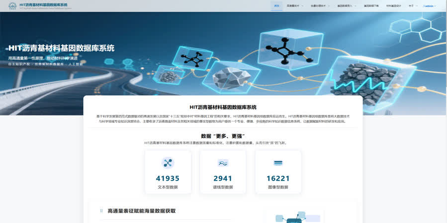 研究團隊持續攻關,面向交通基礎設施瀝青基材料智能化逆向設計與高性能化應用需求,突破傳統設計瓶頸,賦能材料智能研發,推出了交通基礎設施瀝青基材料基因數據庫系統(網址:http://www.hit-asphalt-gene.cn)。