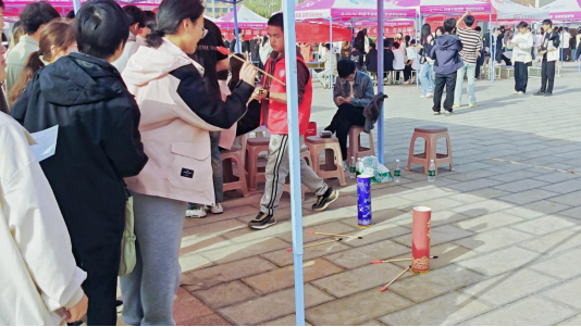 游园会现场分为“趣味通关”和“欢聚一堂”两大板块。在“趣味通关”区域,设置了传统文化类、艺术创作类、益智闯关类、体育运动类共计23个游戏关卡,每个站点都有独特的主题和游戏打卡活动。同学们兴致勃勃地穿梭于各个站点之间,凭借智慧与活力打卡通关,根据积累印章数参与奖品兑换。与此同时,“欢聚一堂”环节也为大家带来了精彩的节目表演。同学们纷纷登台献艺,充分展现了当代大学生的才华与风采。表演现场掌声雷动,欢呼声此起彼伏,将游园会的气氛推向了高潮。