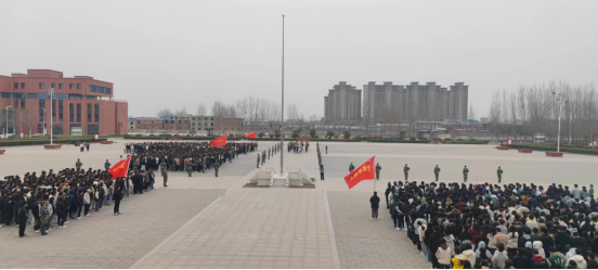 旭日初升,两千余名师生昂首挺立于国旗台前。“请全体肃立,迎国旗!”一声令下,国旗护卫队迈着整齐的步伐将国旗运至国旗台下。“向国旗敬礼!”,五星红旗伴随着雄壮的国歌冉冉升起,激情昂扬的歌声响彻校园,全体师生目光坚定,共同见证这国防教育中领人难忘的一刻。