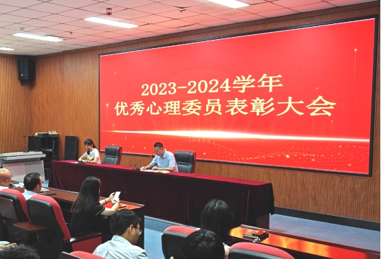 为进一步加强我校的心理健康教育工作,贯彻落实河南工业和信息化职业学院《关于加强心理健康工作队伍建设》文件精神,增强大学生心理健康教育预防、咨询以及心理危机的预警能力,充分调动心理委员工作的积极性,增强心理健康工作队伍的凝聚力,6月14日下午,我校在第四会议室召开2023-2024学年优秀心理委员表彰大会,学生工作部部长丁军猛、各系部(二级学院)主管领导、各系部(二级学院)心理辅导员和优秀心理委员参会。会议由心理健康教育中心主任张琬晴主持。