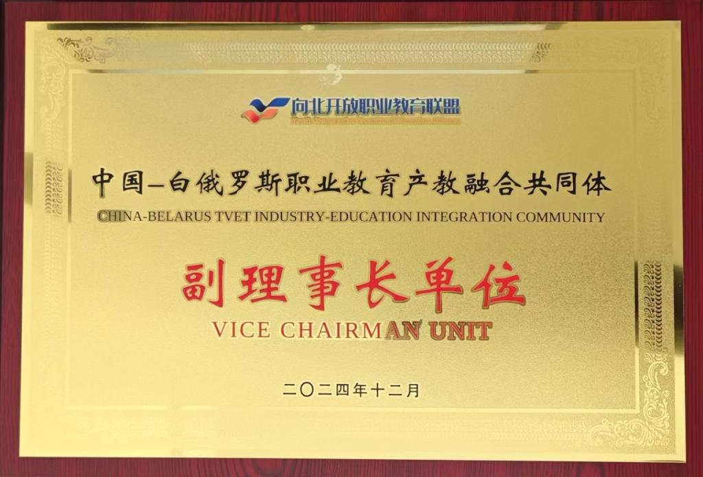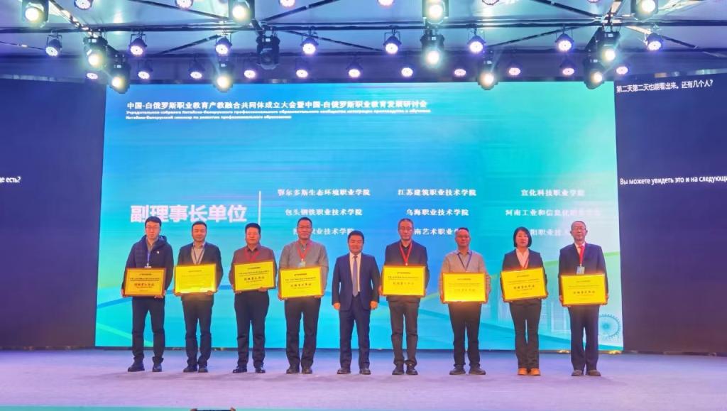 会上,由内蒙古建筑职业技术学院、鄂尔多斯生态环境职业学院、白俄罗斯共和国职业教育研究院共同发起成立了“中国-白俄罗斯职业教育产教融合共同体”。该共同体汇聚了中国及白俄罗斯职业教育领域的政府部门、行业协会、高等院校、中资企业,通过构建集资源共享、优势互补、协同创新于一体的国际合作平台,促进两国职业教育高质量发展。我校荣誉受聘,成为共同体副理事长单位并参与共同体建设。