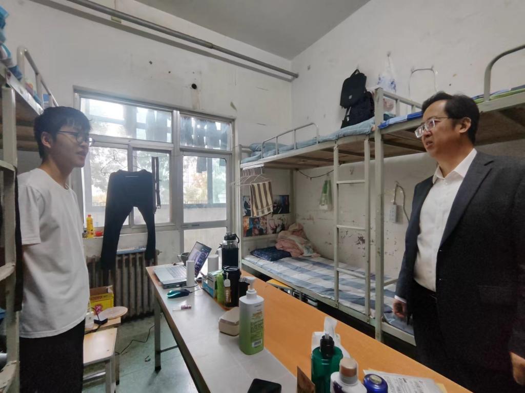 尹彦礼一行实地检查了学校消防、安全保卫工作,并到施工工地、学生宿舍、学生餐厅等校园安全重点部位查看安全责任落实情况。