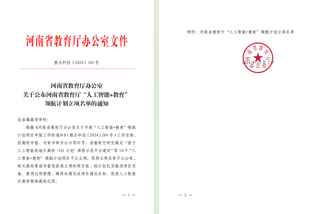 近日,河南省教育厅公布了“人工智能+教育”领航计划立项名单,我校牵头申报的“人工智能大模型赋能职业教育学生心理健康监测与服务”项目成功立项。