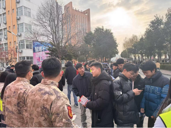 12月27日上午,示范区武装办在我校一餐厅前广场举行了2025年度征兵工作宣传。此次活动旨在向广大学生普及参军入伍的相关政策,激发他们的爱国情怀和报国热情,进一步推动征兵工作的顺利开展。